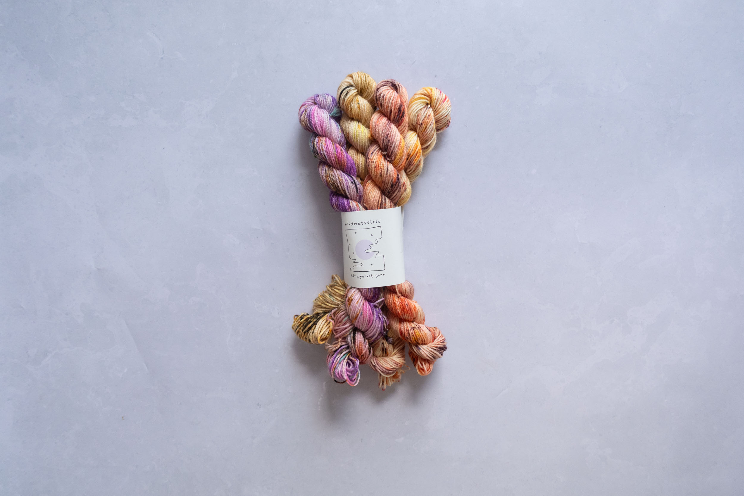 Håndfarvet garn bliver ofte lidt forskelligt fra farvning til farvning og derfor anbefales det, at bestille nok garn til hele dit strikkeprojekt på én gang. Så får du det mest ensartede resultat.
