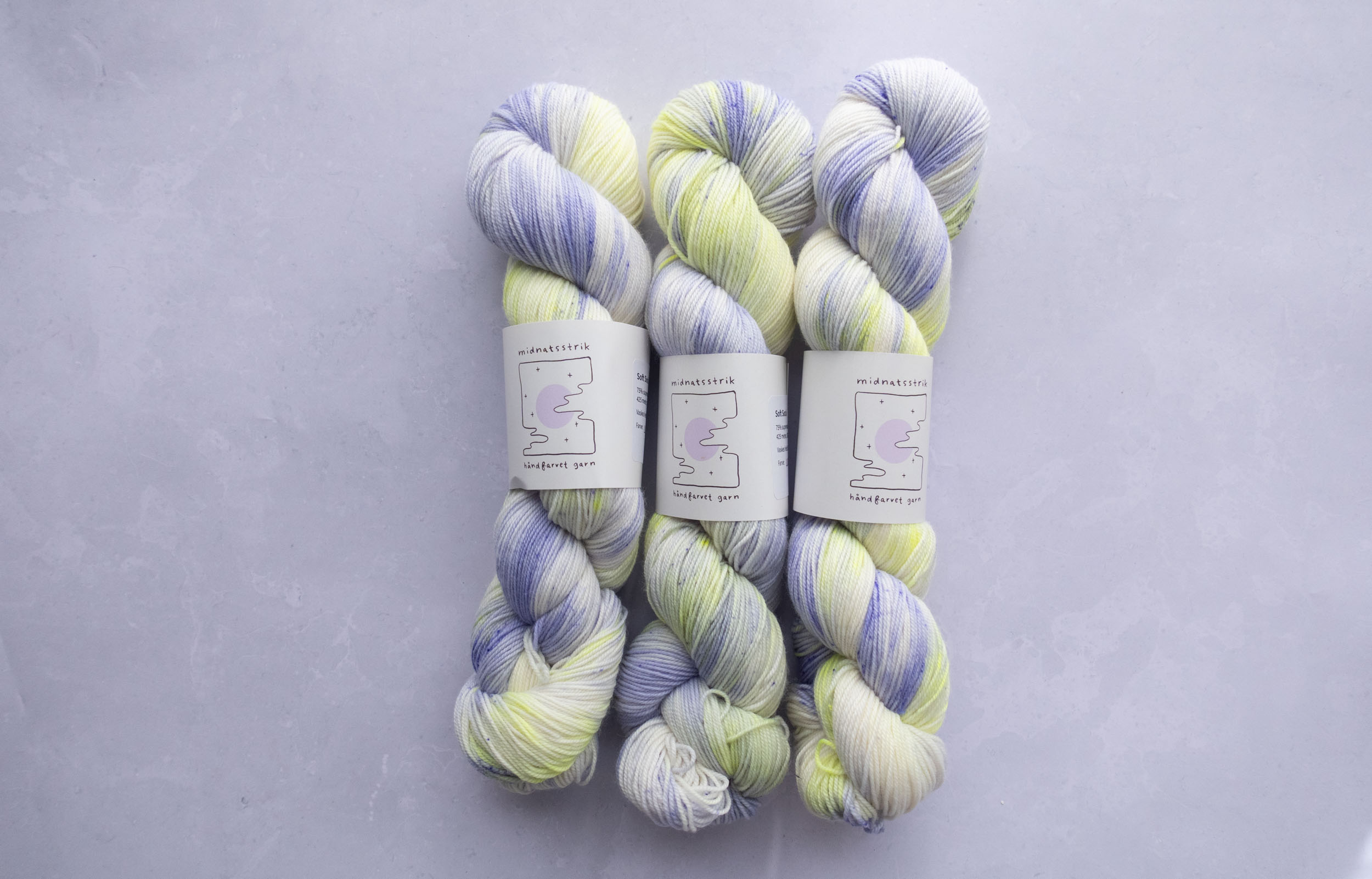 Håndfarvet garn bliver ofte lidt forskelligt fra farvning til farvning og derfor anbefales det, at bestille nok garn til hele dit strikkeprojekt på én gang. Så får du det mest ensartede resultat.